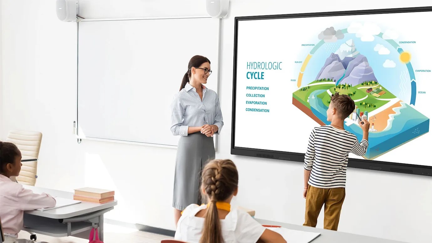 Disfrute de una calidad de imagen que permite ver cada detalle incluso en aulas grandes. La combinación de la resolución 4K nativa y el cristal especial Zero-Bonded garantiza que los diagramas, los textos y los vídeos se vean nítidos y vivos. Este diseño minimiza la distancia entre la superficie de cristal y el panel, lo que permite una sensación de escritura natural sin retrasos. La pantalla táctil de 40 puntos invita a toda la clase a participar activamente, ya que varias personas pueden resolver tareas o hacer comentarios al mismo tiempo. De este modo, la pizarra digital se convierte en el lugar central del aprendizaje conjunto, donde cada contribución es directamente visible.
